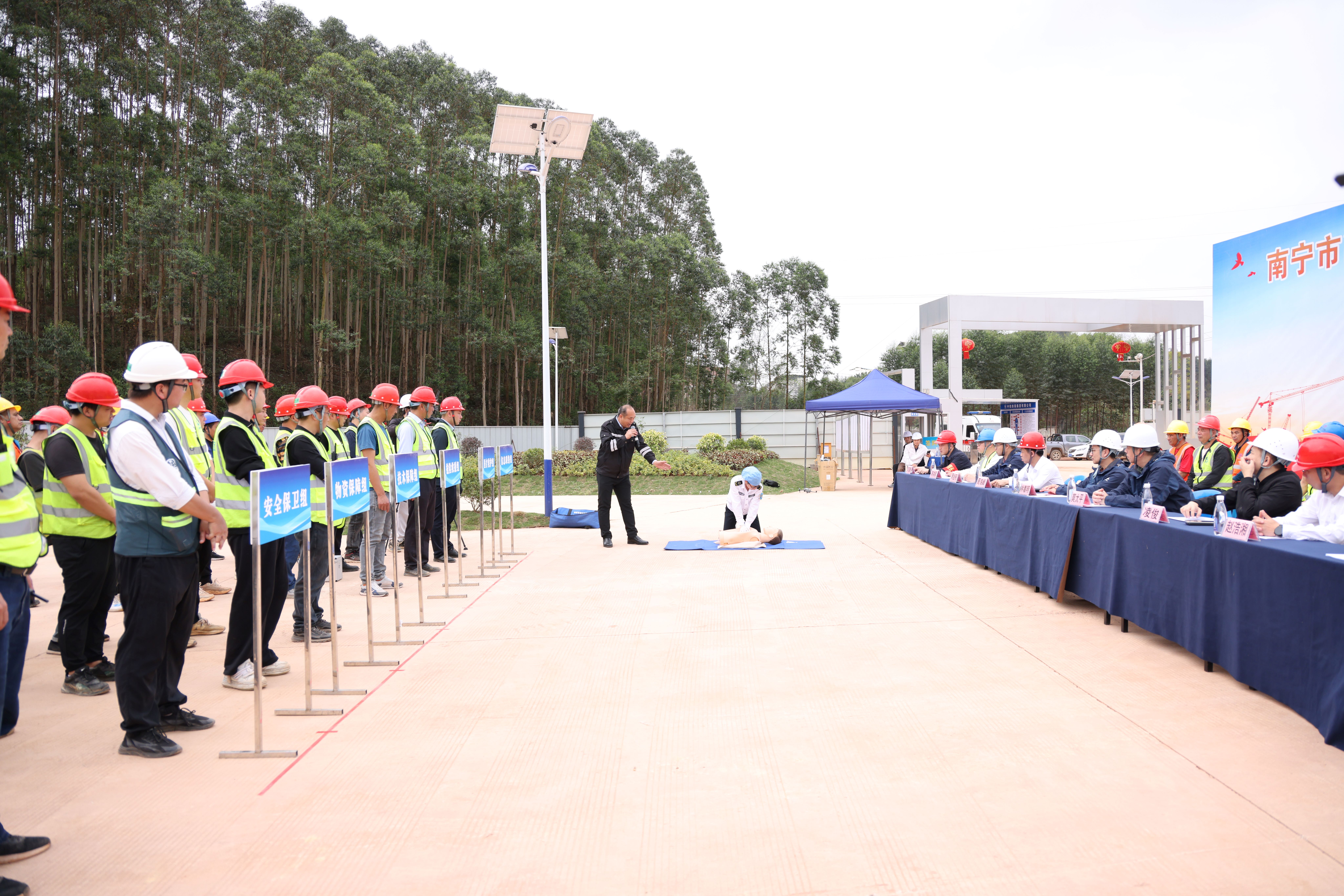 演練過程中,各救援小組按照應(yīng)急預(yù)案的責(zé)任分工密切配合,整個(gè)過程組織有序、銜接緊密,最終順利完成了突發(fā)事故的緊急救援任務(wù),達(dá)到了預(yù)期的演練效果。演練結(jié)束后,南寧市玉洞醫(yī)院的醫(yī)生為大家講解了心肺復(fù)蘇的基本知識(shí)和技巧,并現(xiàn)場(chǎng)演示了單人徒手心肺復(fù)蘇及人工呼吸法,指導(dǎo)參演人員進(jìn)行實(shí)際操作演練。