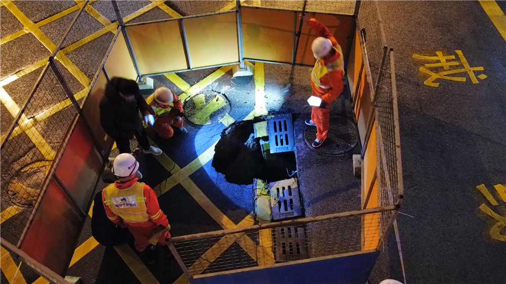 由于搶修位置地下管線復雜,施工場地狹窄,施工過程中,既要保障消防車輛正常出入,又要保護地下管線,同時陰雨連綿的天氣,給施工造成極大不便。搶險人員想方設法,克服重重困難全力推進,經(jīng)過連夜奮戰(zhàn),第二天下午16時,已完成塌陷井室修復、基坑灌注混凝土工作,目前正進行混凝土養(yǎng)護,預計2月19日前完成最后瀝青路面恢復工作。