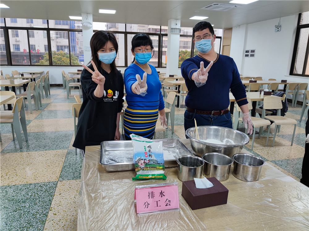 待一切準備就緒,比賽開始。各參賽隊分工明確,且有各自的戰(zhàn)術,大家爭分奪秒地和面、按窩、包餡、搓圓、擺盤,團結協(xié)作,其樂融融……在選手們的巧手下,一個個充滿愛心的湯圓逐漸成形。隨后,裁判組通過對各參賽隊湯圓數(shù)量與質量的雙重評比,最終由排水公司韋春芳、郭念城、李婧瑤組成的參賽隊獲得了第一名。