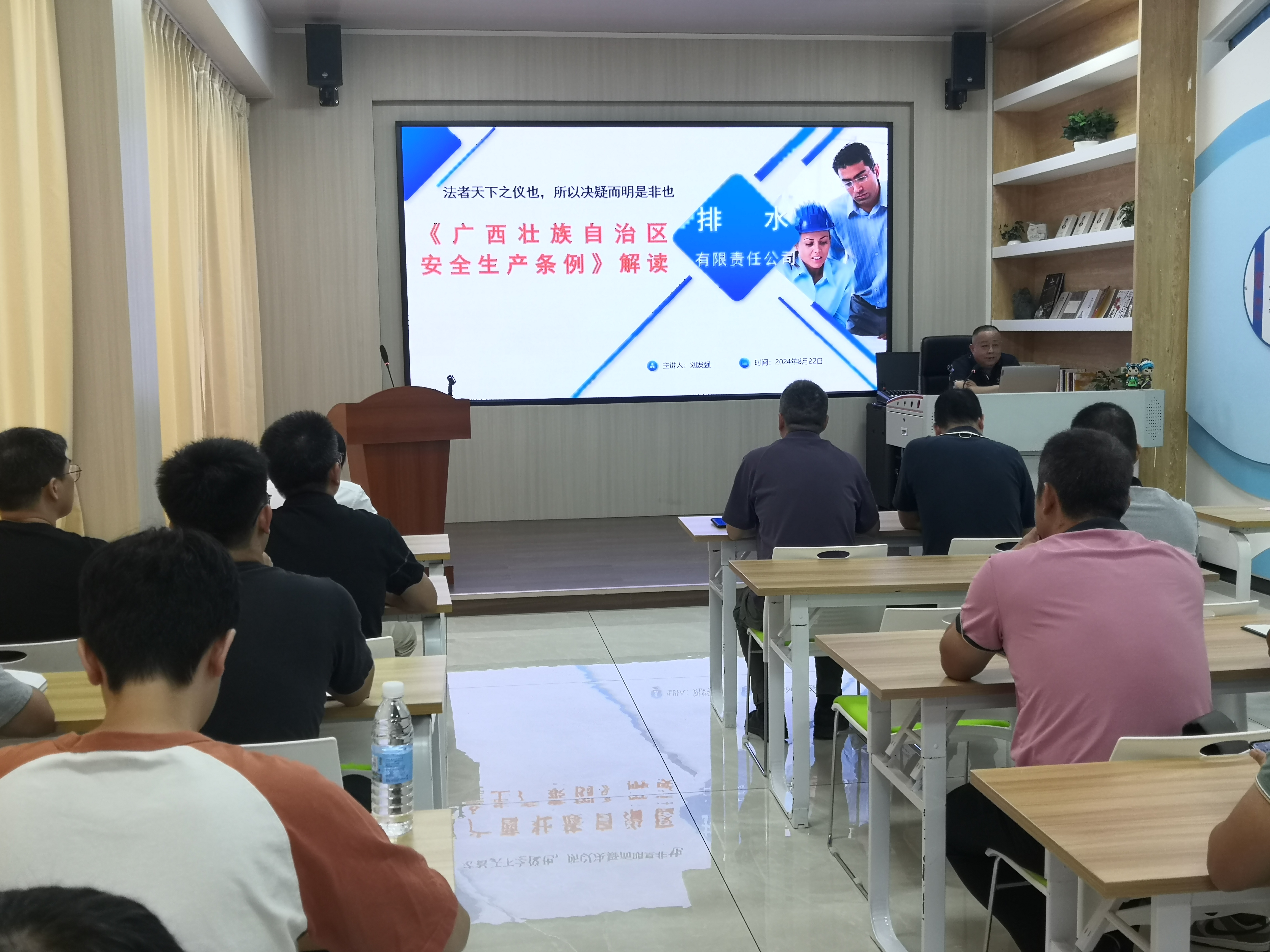 8月22日,市排水公司在新時代學(xué)習(xí)大講堂舉辦《廣西壯族自治區(qū)安全生產(chǎn)條例》宣貫暨落實全員安全生產(chǎn)責(zé)任制專題培訓(xùn)班。