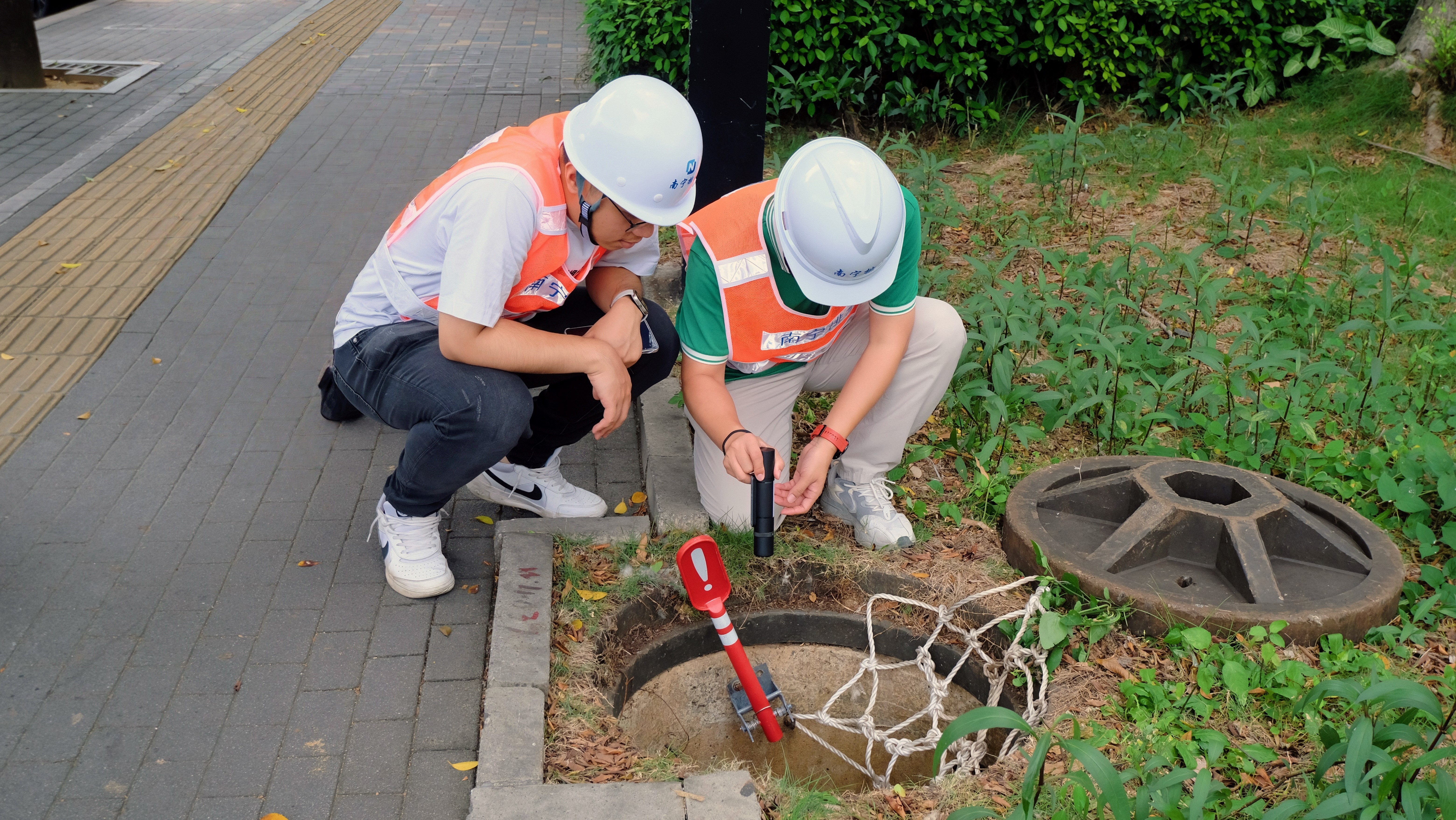 市排水公司工作人員對(duì)高考考點(diǎn)周邊排水管道進(jìn)行檢查