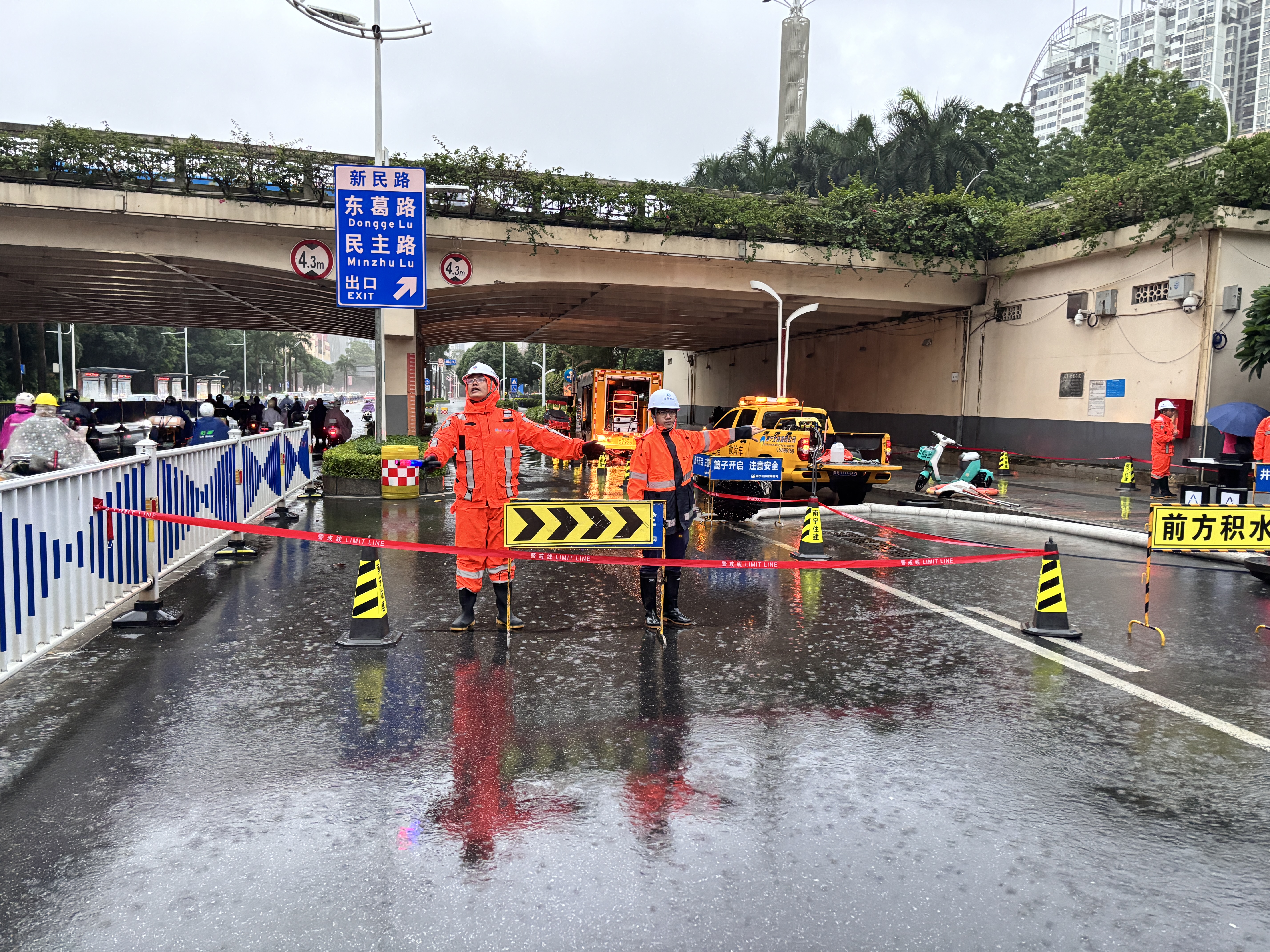 中考期間,市排水公司進一步加強值守力量,在各考點安排專人定點值守,隨時應(yīng)對突發(fā)排水險情。同時,對每個考點實施“一點一策”保障方案,提前部署排水搶險車、抽水泵等應(yīng)急設(shè)備,確保一旦出現(xiàn)積水情況,能夠第一時間進行抽排作業(yè)。27日凌晨,南寧市氣象臺發(fā)布暴雨紅色預(yù)警,市排水公司根據(jù)預(yù)案啟動全員備勤值守,提前到達(dá)易積水路段,第一時間開展積水處置工作,最大程度保證考生平安赴考。